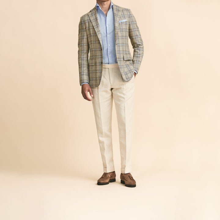 Sport Coat - Sand Wool-Silk-Linen with Grey Check by Loro Piana 9100