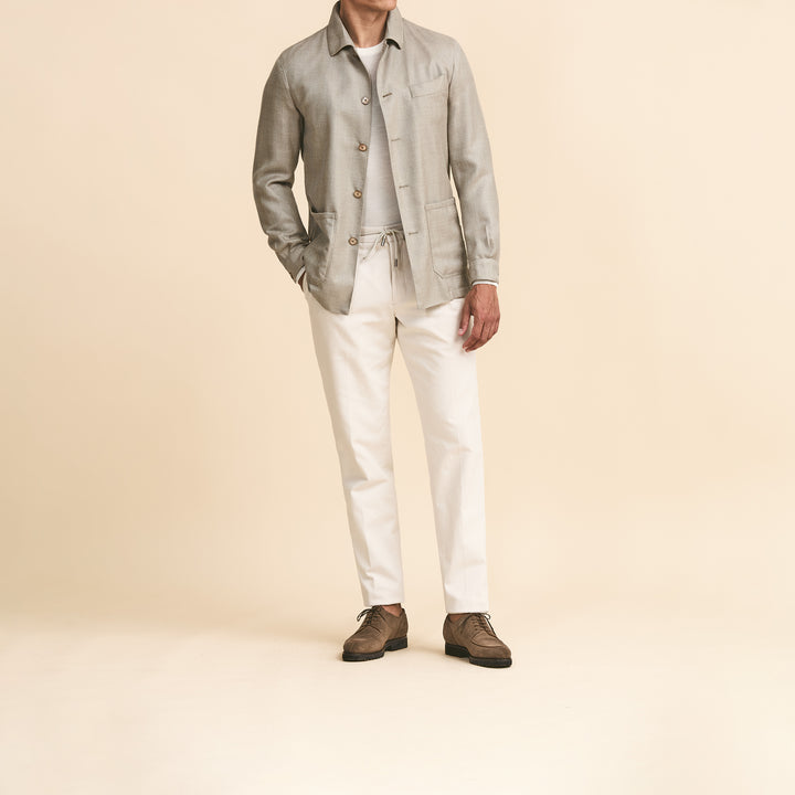 Sport Coat - Light Beige Wool-Silk-Linen Herringbone 9102