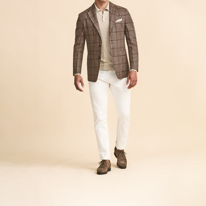 Sport Coat - Chesnut Brown Wool-Silk-Linen with Light Grey Windowpane 9109
